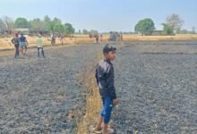 *बिजली का तार गिरने से 14 बीघा गेहूं की फसल राख *