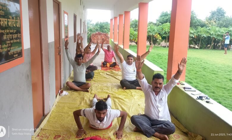 योगा गुरु पन्ना लाल सोनी ने सिखाया करमा मण्डल को योगा।
