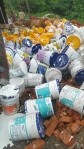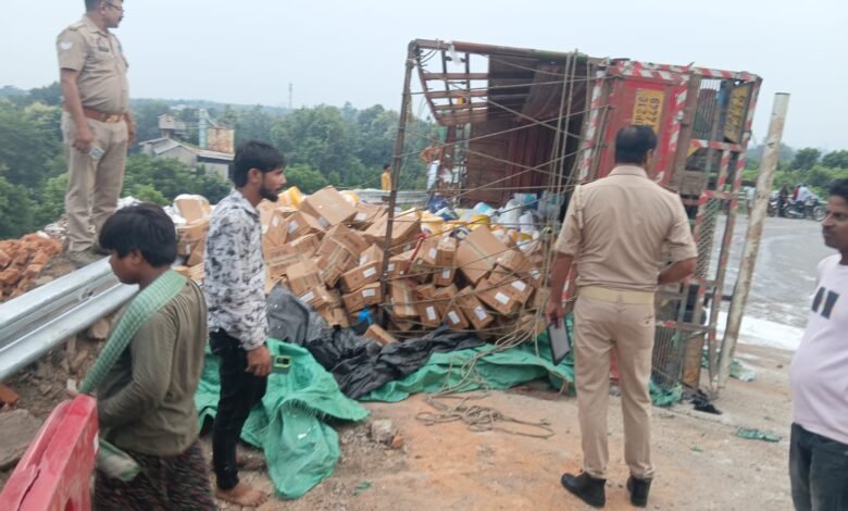 गुरमा- सोनभद्र। चोपन थाना क्षेत्र के गुरमा चौकी क्षेत्र अंतर्गत मारकुंडी घाटी में रविवार को बड़ा हादसा होते-होते टल गया। बताया जा रहा है कि यूपी 21 सी टी1449 नंबर की डीसीएम, जिसमें जेके मैक्स कंपनी के पेंट के डब्बे लदे थे, तेज गति से घाटी उतरते समय अचानक अनियंत्रित होकर पलट गई।दबकर क्षतिग्रस्त हो गया। दर्जनों पेंट के डब्बे फट गए और रंग सड़क पर बहकर फैल गया, जिससे घाटी मार्ग पर फिसलन की स्थिति बन गई और राहगीरों को आवागमन में दिक्कत का सामना करना पड़ा।हालांकि गनीमत रही कि हादसे में चालक व खलासी सुरक्षित बच गए और किसी तरह की जनहानि नहीं हुई।घटना की सूचना मिलते ही गुरमा चौकी प्रभारी धर्म नारायण भार्गव अपनी पुलिस टीम के साथ तत्काल मौके पर पहुँचे और स्थिति का जायजा लिया। फिलहाल सड़क पर फैले पेंट और क्षतिग्रस्त ड्रमों को किनारे हटाने का प्रयास किया जा रहा है। वहीं, पलटी हुई डीसीएम को सीधा करने के लिए क्रेन मंगवाई गई है, जिसका इंतजार किया जा रहा है।