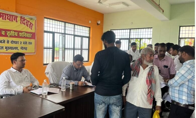 कार्यक्रम की अध्यक्षता उपजिलाधिकारी विकास मित्तल ने किया ।सम्पूर्ण समाधान दिवस में राजस्व,वन विभाग, शिक्षा विभाग की कुल 22 शिकायतें मिली, जिसमें 3 का तुरंत समाधान किया गया ।और बाकी शिकायतों को जल्द से जल्द समाधान करने को सम्बन्धित अधिकारियों को उप जिलाधिकारी विकास मित्तल ने निर्देश दिए।इस मौके पर खंड विकास अधिकारी अमित कुमार,तहसीलदार अनुराग सिंह,नायब तहसीलदार प्रभु नारायण, खंड शिक्षा अधिकारी लाल मनीराम, जयमोहनी रेंजर मकसूद हुसैन और सम्बन्धित अधिकारी मौजूद रहे।