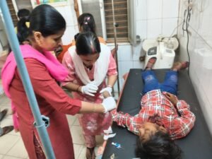 कराया गया जहां अस्पताल में इलाज जारी है। सूत्रों की माने तो सभी घायलों में 13 की हालत नाजुक देखते हुए बेहतर उपचार के लिए जिला अस्पताल रेफर किया गया है lघायलों में 3 बच्चे भी शामिल हैं।किसी ने थाने पर सूचना दी सूचना मिलते ही मौके पर पहुंची पुलिस।