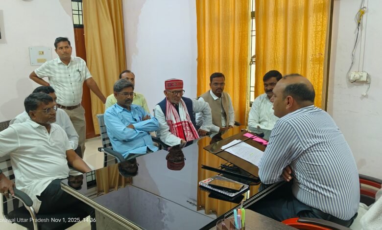 किसान नेता लालजी तिवारी व विधायक प्रतिनिधि सुरेन्द्र मौर्य ने एसडीएम से किसानों के मुआवजा हेतु किया मांग। करमा,सोनभद्र