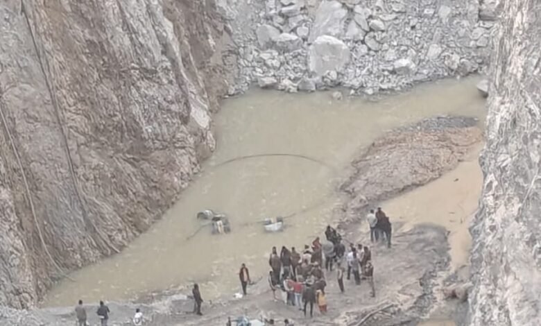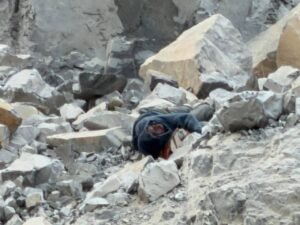 पत्थर खदान में अचानक दरकने से मजदूरों की दबने की आशंका।