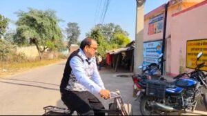 *ऑनलाइन हाजिरी और 200 रुपये भत्ते के विरोध में साईकिल चलाकर पंचायत भवन कार्यालय पहुंचे सचिव*