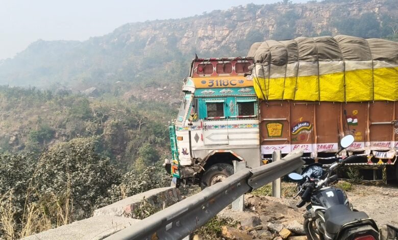 *मारकुंडी घाटी में उतरते समय पहाड़ी से टकरायी लोड अनियंत्रित ट्रक*