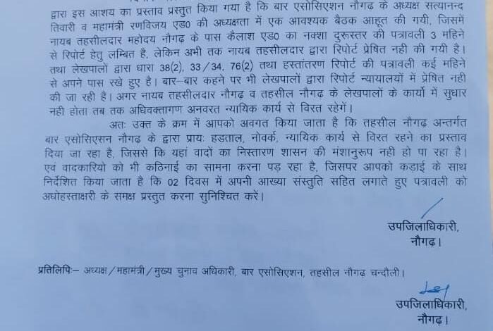 *नौगढ़ में वकीलों की चेतावनी के बाद एसडीएम सख्त, तहसीलदार को 2 दिन में रिपोर्ट सौंपने का अल्टीमेटम*