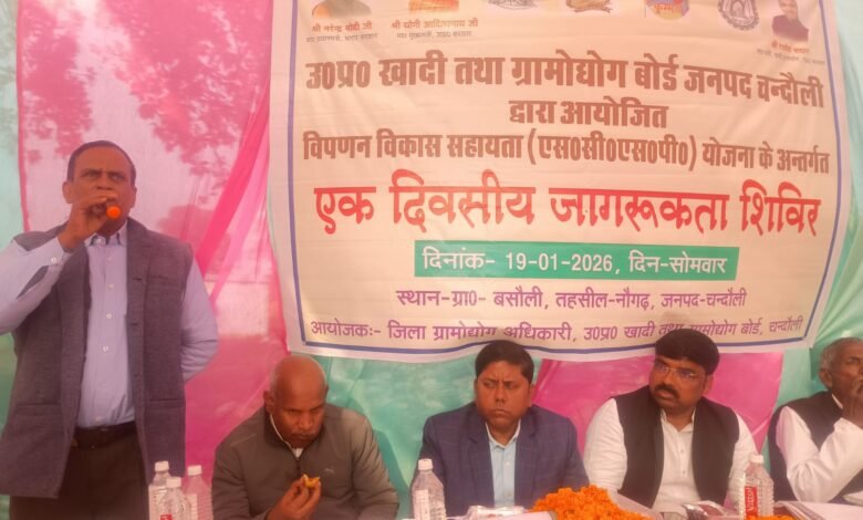 (चंदौली) प्रदेश सरकार की स्वरोजगार योजनाओं को धरातल पर उतारने और ग्रामीणों को आत्मनिर्भर बनाने के उद्देश्य से चंदौली जिले के नौगढ़ तहसील क्षेत्र अन्तर्गत ग्राम बसौली में ‘उत्तर प्रदेश खादी तथा ग्रामोद्योग बोर्ड’ द्वारा एक दिवसीय जागरूकता कार्यक्रम का आयोजन किया गया। प्राप्त जानकारी के अनुसार कार्यक्रम में मुख्य अतिथि के रूप में पहुंचे जिला ग्रामोद्योग अधिकारी गिरजा प्रसाद ने ग्रामीणों को संबोधित करते हुए विभागीय योजनाओं की विस्तृत जानकारी दी। उन्होंने बताया कि ग्रामीण युवा सरकार की योजनाओं का लाभ उठाकर न केवल खुद का व्यवसाय शुरू कर सकते हैं, बल्कि दूसरों को भी रोजगार दे सकते हैं।