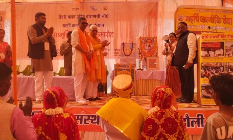(नौगढ़) :रोटरी क्लब ऑफ़ वाराणसी नार्थ के तत्वावधान में जिले के नौगढ़ तहसील क्षेत्र अंतर्गत महर्षि बाल्मीकि सेवा संस्थान देवखत के परिसर में स्थित पंचदेव मंदिर में 11 निर्धन कन्याओं का सामूहिक विवाह शास्त्रीय विधि-विधान से संपन्न कराया गया।