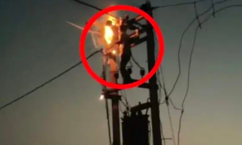 ट्रांसफार्मर चढ़ाते वक्त, अचानक आ गयी विद्युत सप्लाई संविदा लाइन मैन झुलसा