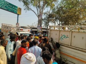 अक्रोशित भीड़ ने मृतक लाईन मैन का शव रखकर खरुवाऊ तिराहे पर किया जाम