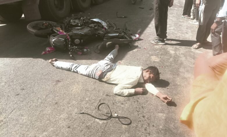 ट्रक के चपेट में आने से युवक की मौत, महिला घायल।