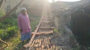 शरारती तत्वों ने ग्राम प्रधान की चहार दीवारी गिराया।