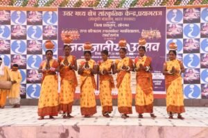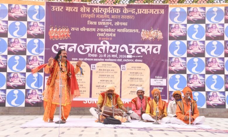 सोनभद्र।उत्तर मध्य क्षेत्र सांस्कृतिक केंद्र,संस्कृति मंत्रालय,भारत सरकार एवं जिला प्रशासन सोनभद्र के संयुक्त तत्वावधान में संत कीनाराम स्नातकोत्तर महाविद्यालय, राबर्ट्सगंज के सहयोग से आयोजित तीन दिवसीय जनजातीय उत्सव का भव्य समापन बुधवार को उत्साह और उमंग के साथ संपन्न हुआ। कार्यक्रम ने क्षेत्र की समृद्ध लोक एवं जनजातीय परंपराओं को जीवंत कर दिया।समापन समारोह का शुभारंभ मुख्य अतिथि समाज कल्याण राजमंत्री संजीव सिंह गौड़ एवं विशिष्ट अतिथि पूर्व विधायक राबर्ट्सगंज तीरथ राज, प्राचार्य डॉ. गोपाल सिंह, सूचना अधिकारी सोनभद्र विनय सिंह,सहायक पर्यटन अधिकारी राजेश भारती, कार्यक्रम समन्वयक, एनसीजेडसीसी मनोज कुमार तथा सहाय द्वारा संयुक्त रूप से दीप प्रज्ज्वलित कर किया गया।