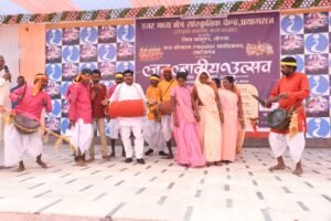 वातावरण वीर रस से सराबोर हो गया।उन्होंने अपने गायन के माध्यम से मांडवगढ़ की लड़ाई,इंदल हरण तथा पलक बुखारा-नैनागढ़ के युद्धों का जीवंत चित्रण प्रस्तुत कर दर्शकों को इतिहास से रूबरू कराया।राजपूताना वेशभूषा में,हाथ में तलवार लिए मंच पर उनकी उपस्थिति ने कार्यक्रम में रोमांच का नया आयाम जोड़ दिया,जिससे पूरा पंडाल तालियों की गड़गड़ाहट से गूंज उठा।इसके पश्चात लोक कलाकारों ने अपनी प्रस्तुतियों से दर्शकों का मन मोह लिया।बूटी बाई ने राई,बलमा एवं चंगेली नृत्य प्रस्तुत कर लोक संस्कृति की छटा बिखेरी,वहीं बनारसी द्वारा करमा नृत्य, महेन्द्र द्वारा डोमकच्छ नृत्य तथा रजनीश एवं दल द्वारा होली नृत्य की रंगारंग
