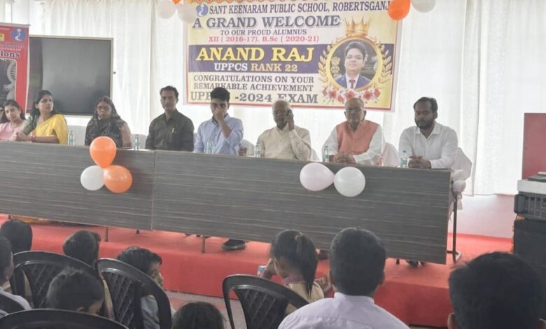 सोनभद्र।अपने मातृ शैक्षणिक संस्थान संत कीनाराम सीनियर सेकण्डरी पब्लिक स्कूल लोढी राबर्टगंज सोनभद्र में सोमवार को आनंद राज सिंह का भव्य स्वागत समारोह आयोजित हुआ।यूपी पीसीएस में 22वां रैंक हासिल करने के उपरान्त आनंद राज का अपने गृह जनपद में जैसे ही आने की खबर लगी।विद्यालय,महाविद्यालय परिवार ने दिल खोलकर अपने होनहार लाल का सम्मान किया।इस पुनीत अवसर पर छात्र-छात्राओं ने अपने गुरूजनों के दिशा-निर्देश में आनंद राज के शैक्षणिक संस्थान संत कीनाराम पब्लिक स्कूल राबर्टगंज को फूल, माला,गुब्बारा,पोस्टर,बैनर से दुल्हन की तरह सजाकर स्वागत हेतु आकुल व्याकुल रहे।आनंद राज का जैसे ही अपने माता- पिता के साथ परिसर मे आगमन हुआ छात्र -छात्राओं ने गाजे बाजे के साथ स्वागत किया।महाविद्यालय के प्राचार्य डॉक्टर गोपाल सिंह ने आनंद राज सिंह के साथ उनके माता पिता का भी अंग वस्त्र,माला,फूल और सन्त कीनाराम महाराज की तस्वीर भेंट कर स्वागत किया।