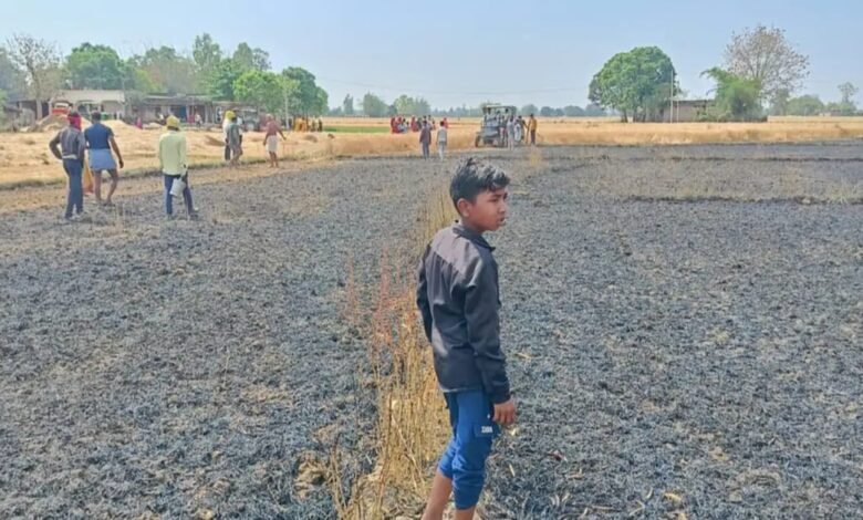 *बिजली का तार गिरने से 14 बीघा गेहूं की फसल राख *