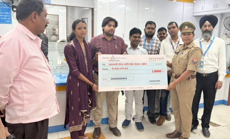 *केनरा बैंक ने कैंसर से मौत होने पर मृतक आश्रित ज्योति को बीमा का दो लाख रुपए राशि का चेक की प्रदान*