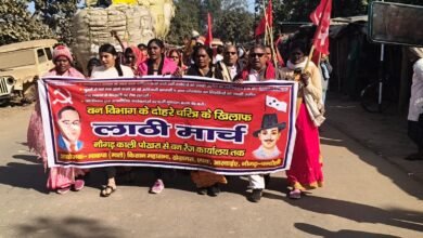 *आदिवासियों की जमीन पर बुलडोजर कार्रवाई के खिलाफ भाकपा (माले) का ‘लाठी मार्च’।*