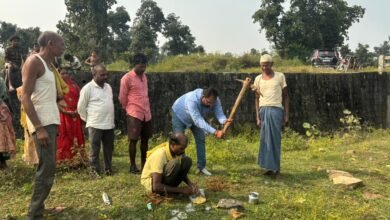*समाजसेवी अमरेश तिवारी ने छठ घाट और चबूतरा निर्माण हेतु किया भूमि पूजन*