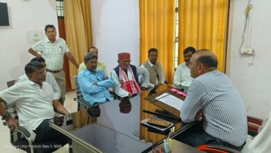 किसान नेता लालजी तिवारी व विधायक प्रतिनिधि सुरेन्द्र मौर्य ने एसडीएम से किसानों के मुआवजा हेतु किया मांग। करमा,सोनभद्र