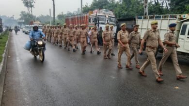 दुर्गा पूजा के मद्दे नजर क्षेत्राधिकारी अमित कुमार की अगुवाई में अनपरा में किया गया फ्लैग मार्च।