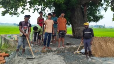 अपने दुर्दशा पर आशु बहाता डीह बाबा का चबूतरा। गांव के नवयुवक दल ने चबूतरे के मरम्मत कार्य की शुरुआत।