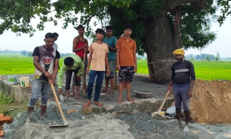 गांव के नवयुवक दल ने चबूतरे के मरम्मत कार्य की शुरुआत।
